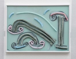 2023, Acrylic behind glass with mop and pipe cleaner, 51 × 71 cm