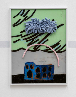 all: 2023, acrylics on cardboard with household objects, 44 × 31.7 cm