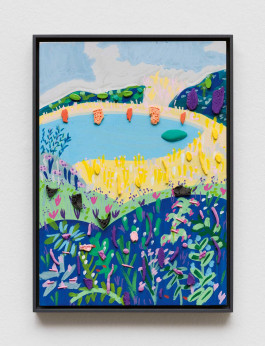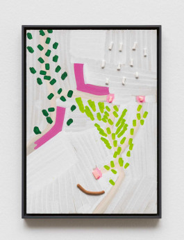 2023, acrylics on cardboard with household objects, 44 × 31.7 cm