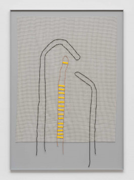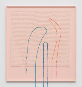 2023, textiles and nylon cords on anti-slip net and painted wood, 242 × 172 cm