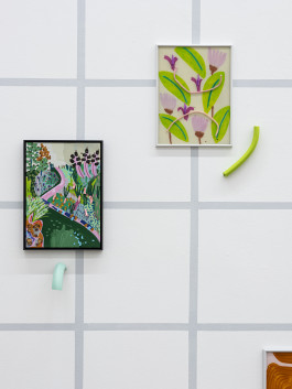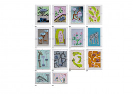 The small-format pictures sometimes show the same motif, increasingly abstracted, so that it is not clear who is referring to whom. Only one thing is certain: Everything is connected to everything else. The pictures were made in parallel. Therefore, if you take a step back and look at the big picture, you can also read them as a single fragmented image. You see flowers, blossoms, pits, beans, seeds—everything that makes nature bloom and flourish. The images describe a proliferating, growing, and ever-changing state of nature.