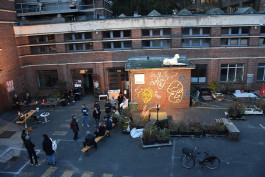 Center: Ramp. A wooden ramp was built over the existing staircase; one had to haul themselves up the very steep incline to the upper floor using a rope. That’s where the bar was. Stefan Hauberg, 2012.