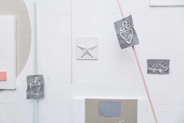 A site specific project on Hannover: the brutalistic Ihme center, former bread factory, and Kurt Schwitters‘ Merzbau.Various materials and works combined, f.ex. bread, salt dough, foam, wood, neon signs, drawings and collagues and more. Size of the window 250 cm × 370 cm. Installation view KESTNER GESELLSCHAFT Hannover, 2017