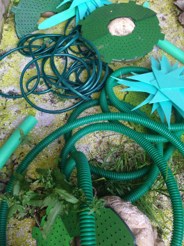 2012, salad cucumbers, nails, adhesive tape, thread, plastic mesh