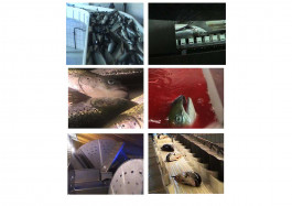 The events, the ambivalence between machines and living beings, and the industrial death of the fish remain uncommented—only the sounds of the factory are heard.