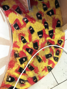 Detail from Trolldeig: „Polemikki", pattern made with pastel chalk on the base of the sculpture